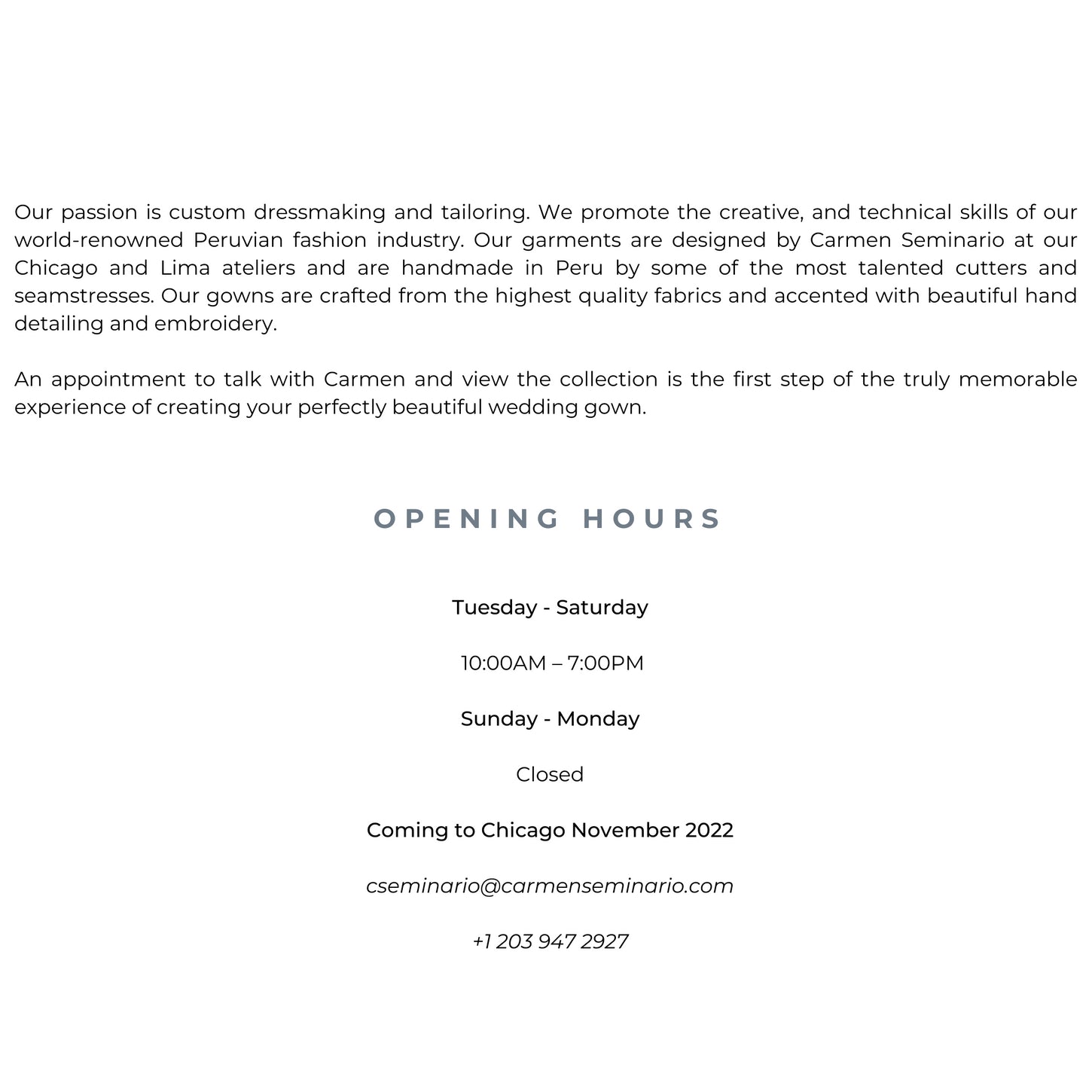 Schedule your appointment to take our Custom Made services in the Bridal & Tailoring lines.